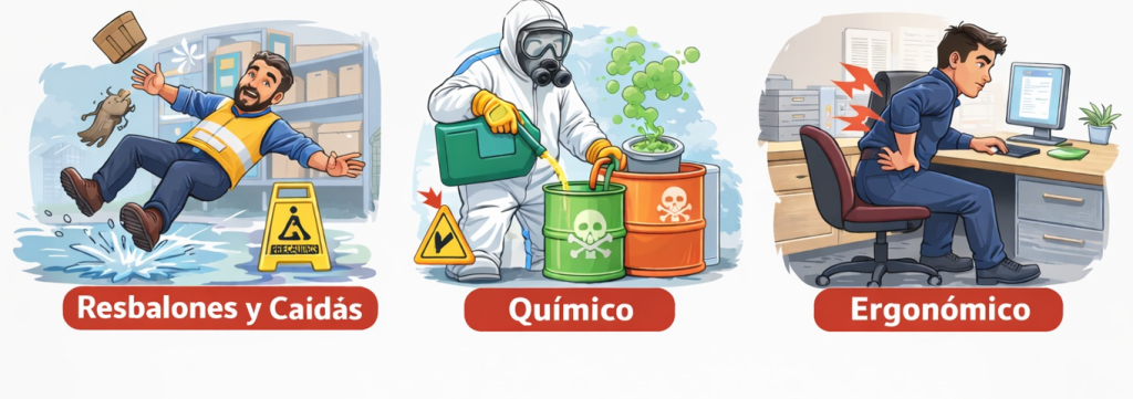 Ejemplo: Piso húmedo, ruido, postura inadecuadas, entre otros.